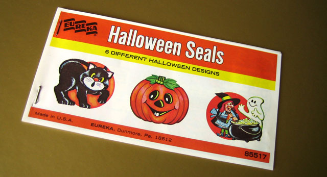 So what I have to show you today is not plentiful. In fact, only one item, the seals, is a true Halloween item that I actually own. Made by Eureka of Dunmore Pa, these are special because every seal is intact within it’s 5 pages, and they are clean and not stuck together. A search for this item on the internet did not turn up a single other sample of these particular stickers, though I did find another booklet of different images, but some of the stickers were missing. I found a statement indicating that this type of seal was manufactured between the 40 and 60s.