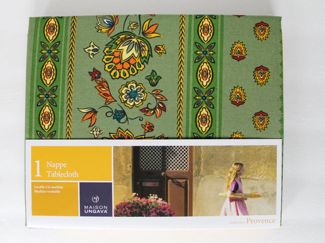 A tablecloth that has never even been out of its packaging. It was made by a company in Quebec, called Maison Ungava.