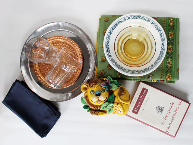 And that wraps up my recent thrift store purchases. I got all this stuff for under $35, which is less than I would have paid for the tablecloth alone, at a ‘regular’ store. I know that thrift store shopping isn’t for everyone, as there are a lot of junky and ugly things to sift through, since after-all, the stock is comprised of someone else’s cast offs. But personally, I get a kick out of finding the needle in the haystack.