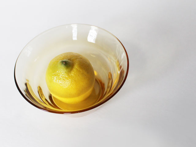 Here is a glass bowl that goes nicely with my other amber glass things, like this plate and this platter.
