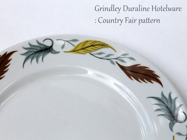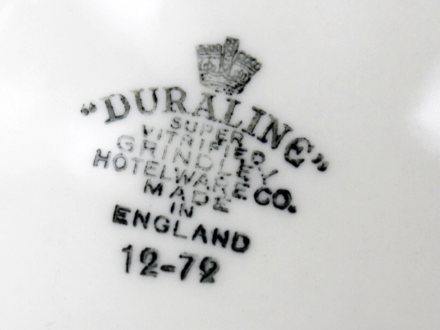 This thick durable crockery, called Vitrified Duraline Hotelware was originally designed for use in restaurants, cafeterias, and hotels, so they got a lot of use, which is why they’re hard to find these days, especially in perfect condition. The pattern on these plates is called “Country Fair” and matches some cereal bowls and fruit bowls that I have (seen here). An interesting thing about Grindley Hotelware is that they stamp the date when they were made on the back of each piece — these were made in 1972, so they’ve survived for 53 years. They’re in such pristine condition that I imagine they were spares that had been put away in storage.