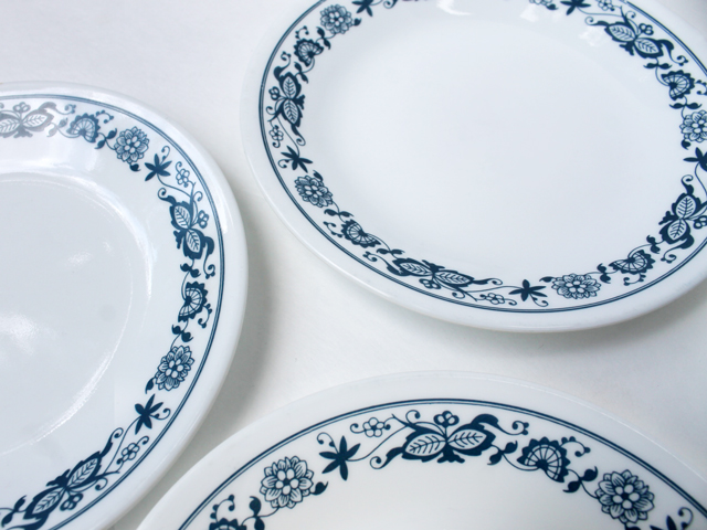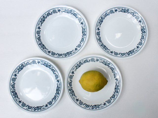 Next up are more side plates. I just couldn’t leave these perfect Corelle ones behind, as I collect vintage Corelle. These are the dishes we use every day, so I get good ones when I find them, especially priced at only $.75 per plate (versus the $2.99 they are at the Toronto Value Village). The pattern is called Old Time Blue, which stopped production in the 70s, making these plates at least 40 years old.