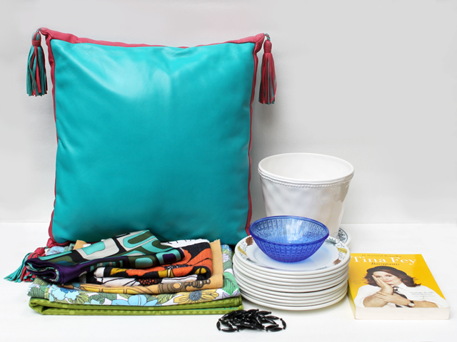Lastly, I got this never-been-used-before genuine leather cushion. It has a zipper at the back and the insert is down feather filled. I have to say that at first I wasn’t thrilled with the colour combination of turquoise and fuschia, and actually put it back on the shelf. But then we needed one more item to bring us up to the $30 that would result in 30% off everything, so basically it was free and reduced the cost of the other stuff too, so why not?