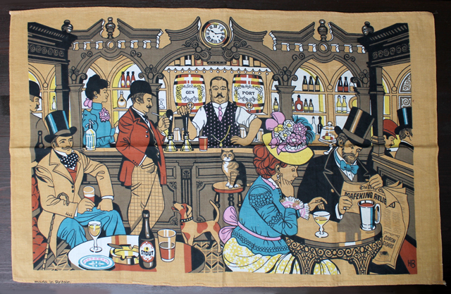 The one with the bar scene is made of cotton and had never even been washed before. I love that there’s a cat and dog in that bar!