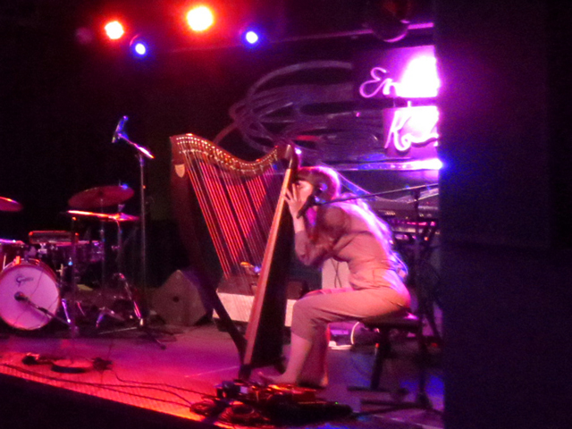 She also had a microphone placed into the wooden column of her harp, which she sang into, through a hole, giving her voice an ethereal echoing sound. This she recorded and looped, and then sang over using the regular mic. This technique was used in the song “Aquarium“, which she performed as a solo. I can honestly say that that piece of music was the richest, most spine-tingling thing I’ve ever heard a musician do by themselves. I imagine that it helped that The Drake has a great sound system, which was being operated by a skilled sound-person. It was simply mesmerizing.