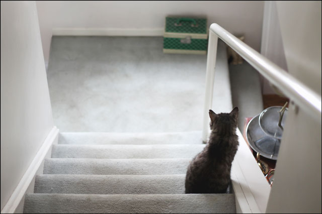 Somehow cat knows the difference between these two chairs, and while he will sit and snooze on his with no problem for as long as I am seated in mine, the moment I get up this happens.