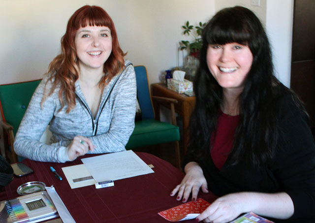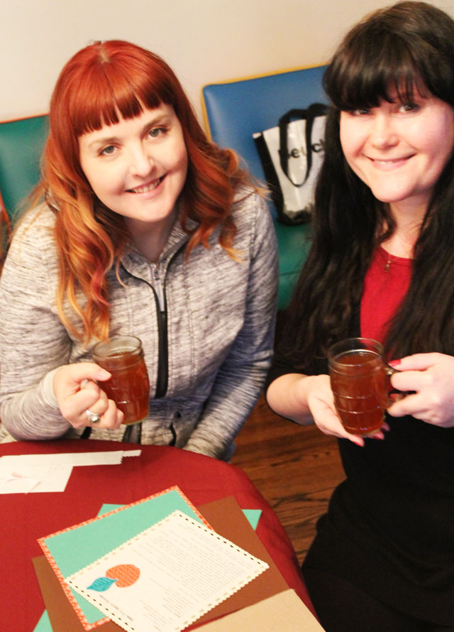 Our friend Andrea asked if I would help her create a paper background for one of her family recipes, and I was happy to do it. So we got together for a little crafting afternoon on Sunday.