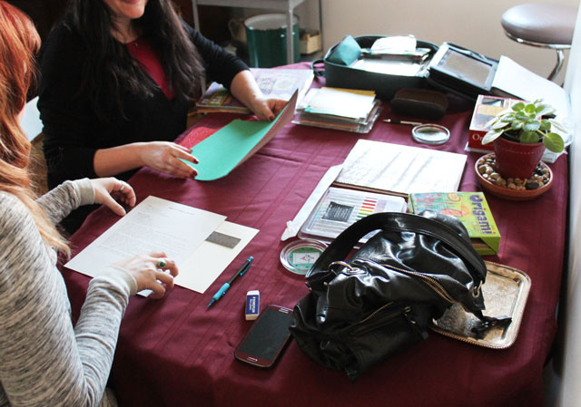 The sun was beginning to set when we got back to the recipe-card-making, so the rest of these shots are taken with the electric lights on. Check out Andrea’s gorgeous new hair colour!