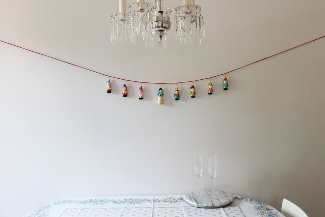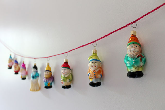You know I love a theme, so I was keen to find a way to add some appropriate decorations. I started with something found in the Christmas box, where I had a set of glass ornaments in the shape of Snow White and the Seven Dwarfs, that Nick gave me one Christmas shortly after we were married. They were made in the Czech Republic.