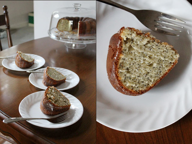 As the sun began to set we went back inside to have dessert, which I made. I wanted to bake something that would suit the theme and saw that the Czechs use poppy seeds in some of their baked goods. So I combined those with a recipe I recently found on the blog ‘A Spoonful of Sugar’, here, for Lemon Bundt Cake. I made the recipe exactly as written however added a quarter of a cup of poppy seeds to the flour mixture. I also made the glaze a lot thinner than the original recipe, not really on purpose, but we all liked the way it turned out, not overly sweet. I’ll be making that one again. Andrea told me that a kind of traditional Czech cake, shaped in a ring like that, is called a Babovka.