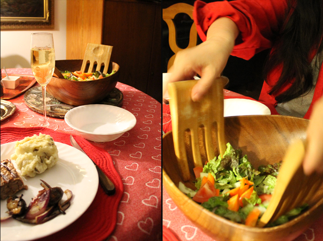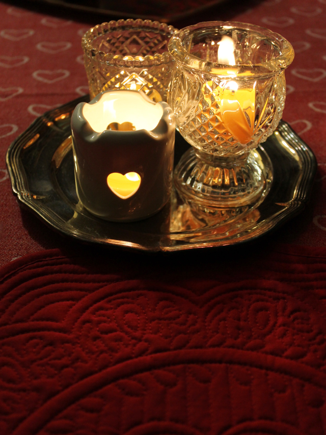 As mentioned in my last post, we quite like Valentine’s Day and always do something to commemorate it. Most years this involves a fancier-than-usual dinner, eaten at a table that is cleared of newspapers (him) and sudoku puzzles (me), and actually set beforehand.