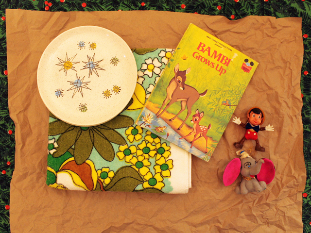 ↑ Camille likes vintage Disney, so I thought she’d enjoy this 70s era Bambi book. I also included a couple of vintage Disney ornaments — one of Pinocchio and one of Dumbo — but didn’t get a dedicated shot of them. ↑