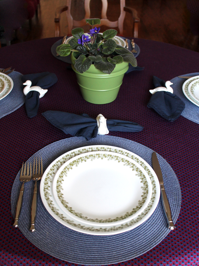 easter-dinner-table-set-with-vintage-corelle-spring-blossom-crazy-daisy