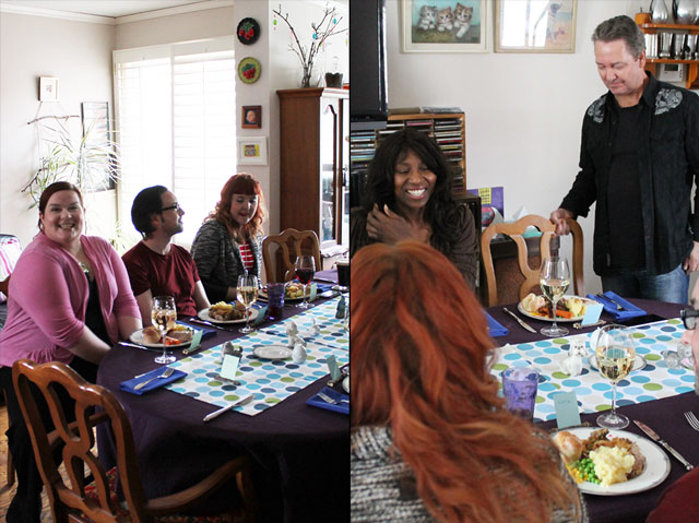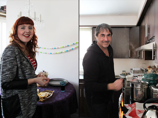 While I had set up some seating areas in the living room, everyone chose to hang out in the kitchen, where Nick was putting the finishing touches on the meal.