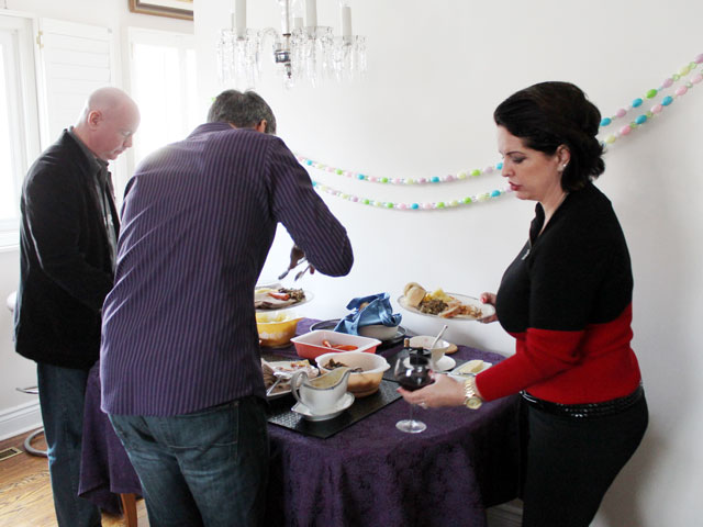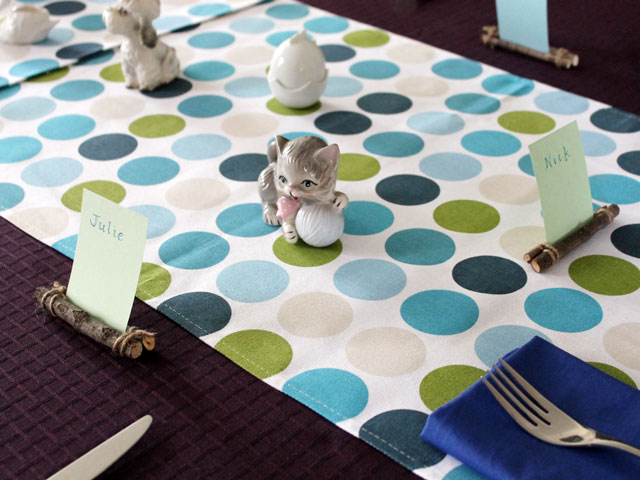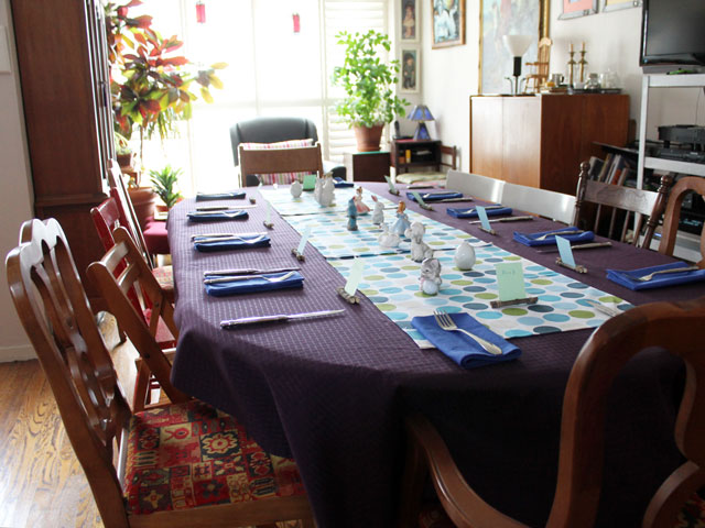 We laid it all out on the kitchen table where everyone helped themselves, and then found their place at the dinning table. (We used the place-card holders I demonstrated in this post.)