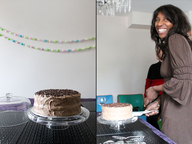 Leslie brought dessert, a chocolate layer cake with a Bailey’s icing. Look how perfect it was and it tasted wonderful too. The lady is good! It was served with vanilla ice-cream.