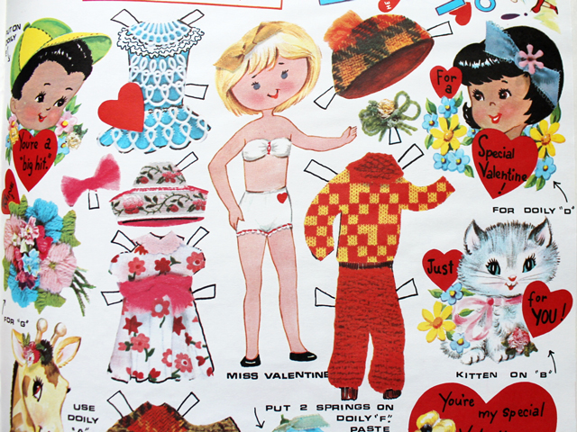 ↑ A paper doll “Miss Valentine” with four outfits, plus accessories! ↑