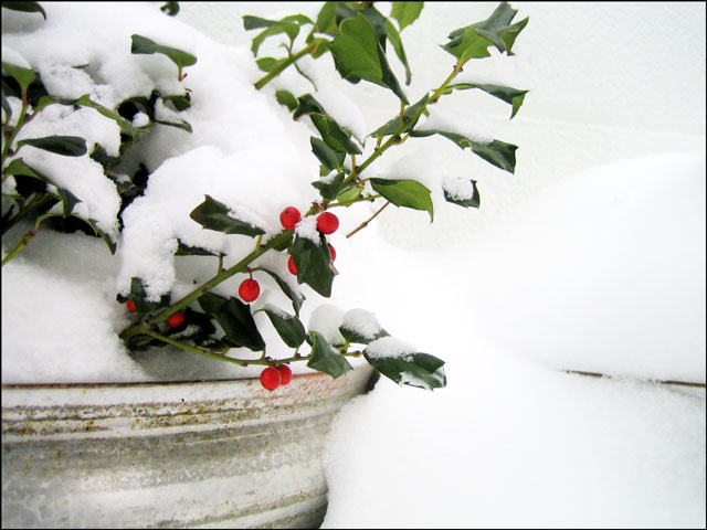 And since I think it’s better for such things to arrive before the holiday rather than after. I popped out in the massive snow storm to mail them on Friday. Here is a shot of the storm when it was only about half way through. I’m not a huge fan of winter but one thing I do like doing is going out during snow storms. It is like you’re on a different planet. Mind you, I certainly would never be walking along in it bare headed like this lady was. I can’t help but wonder why she didn’t pull that warm looking hood up.