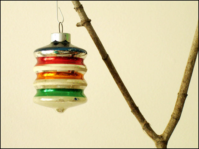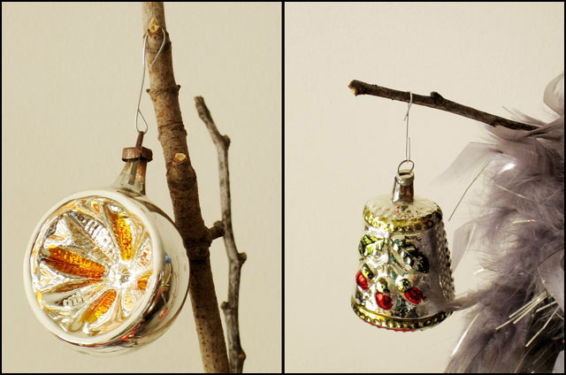 Since I began collecting vintage Christmas ornaments a few years ago I’ve been on the look-out for a vintage display stand. These are metal stands, which sit upon a table, with curled arms from which you hang the special ornaments you want to feature. But these seem to be quite rare and so far I’ve had no luck in finding one to call my own, so this year I decided to make my own using tree branches.