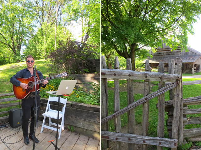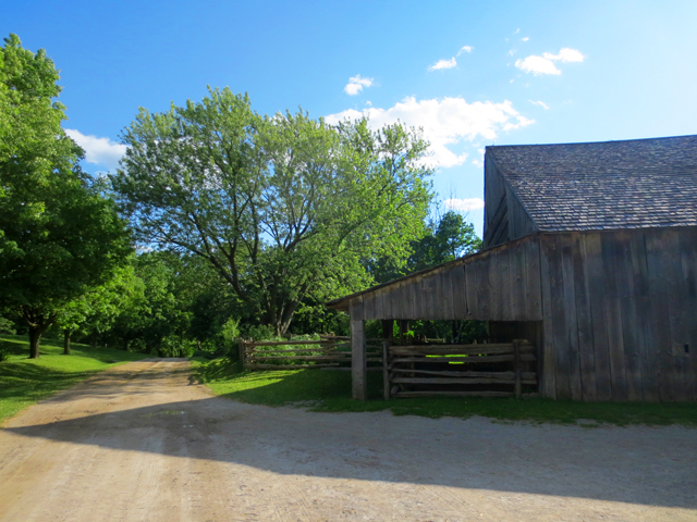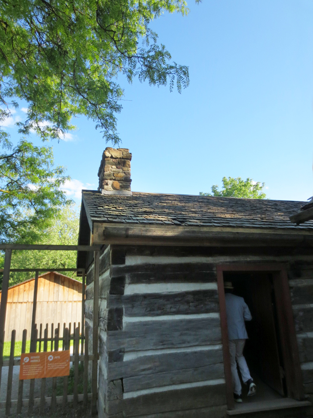↑ The building behind him is the second original home on the land, built by the Stong family in 1832. They’d prospered during their 16 years of homesteading and had had six sons and two daughters, so needed a much larger home, which they built within feet of their previous one.