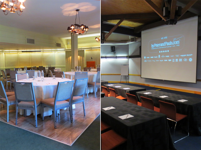A few places were beautifully set up as though ready for a wedding, to demonstrate the possible options. There was also a room set up with holiday/Christmas decor, including a live Santa Claus, to give people an idea what a lovely seasonal party venue it made. And there were a couple of conference/business meeting rooms set up, to show off those facilities.