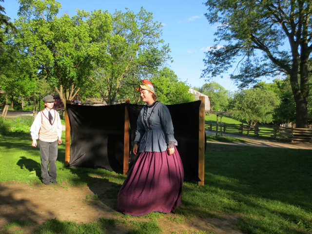 ↑ Behind the scenes of the live outdoor theatre. These ladies put on such an enjoyable and funny short play about how Canada became a country. ↑