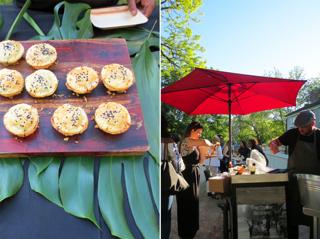 ↑ While we missed one food station by turning right instead of left, there was plenty more delicious food to sample! Here we had a tasty little savoury vegetable and lentil pie, and an oyster in a half shell with horse-radish, hot sauce and fresh lemon juice. ↑