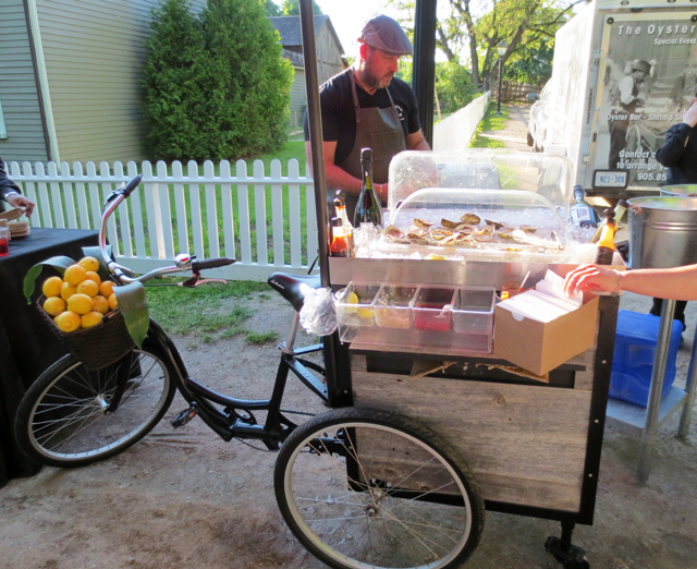 ↑ The oyster station, by Oyster Brothers, was parked there, however it was actually a little cart pulled by a vintage looking bicycle, so it could ride around the grounds, offering oysters to all. ↑