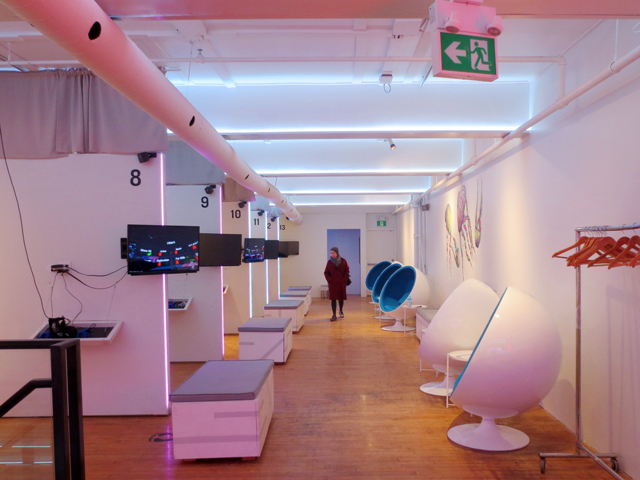 ↑ For a more personal experience, the 360 degree pod chairs are the way to go. ↑