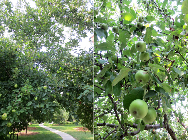 ↑ An orchard including fruit trees descending from the originals that were there. ↑