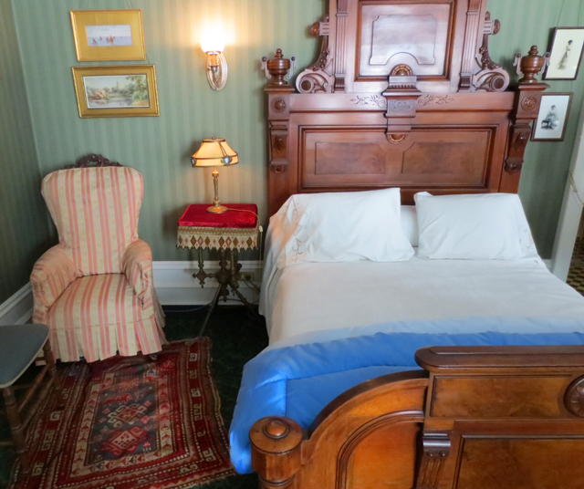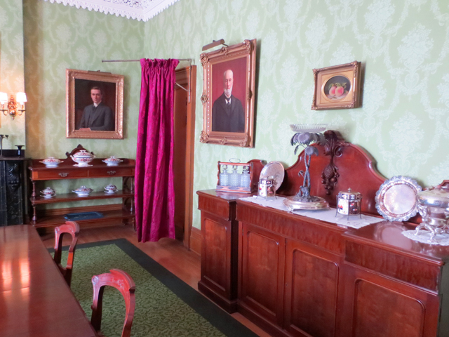 ↑ The dining room. A peddle contraption below the lady of the house’s chair was discovered when they did the restorations. She would have used it to signal to the staff in the kitchen, to let them know when to serve dinner, etc. See the door through which they would have come, there on the right? ↑