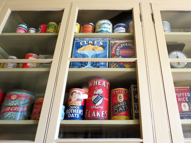 ↑ The pantry contained examples of original food packaging of that era, and some reproduced items. ↑