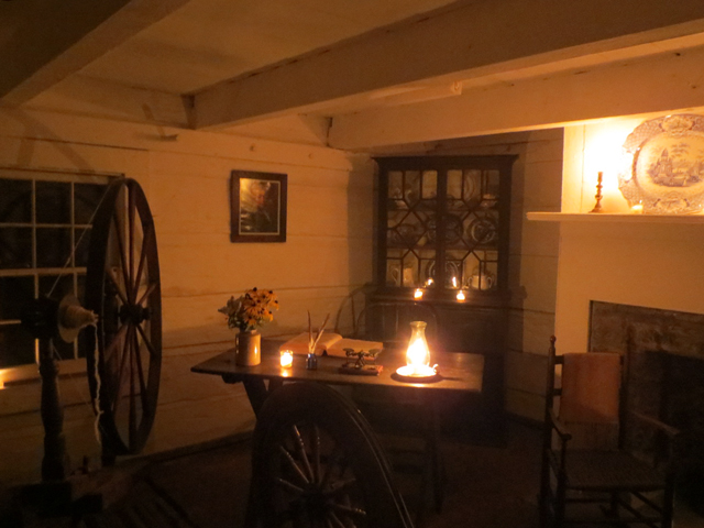 inside-scadding-cabin-at-night-on-cne-grounds-torontos-oldest-house