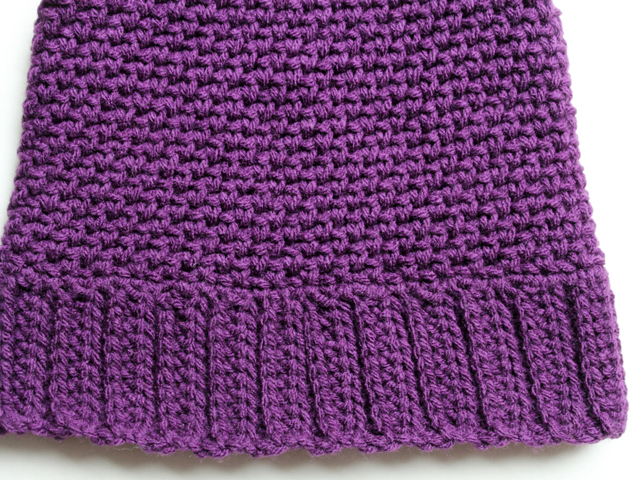 Once it’s tall enough, you can either leave yourself a long enough tail of yarn to hand-stitch across the top of the hat, or crochet across the top, using a slip stitch (that is what I did). If you’re going to crocheting across the top, stop your rounds 1 inch from the side of the hat (remembering that the seam in the ribbing will be exactly in the centre of the back of the hat).