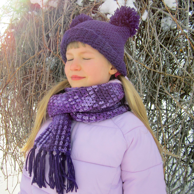 It’s been fun thinking up a new idea for what to make each year. This year, she was at an age that I thought she’d appreciate something to wear and, since she lives in one of Canada’s coldest and snowiest cities, a cozy scarf and hat set seemed the perfect thing.