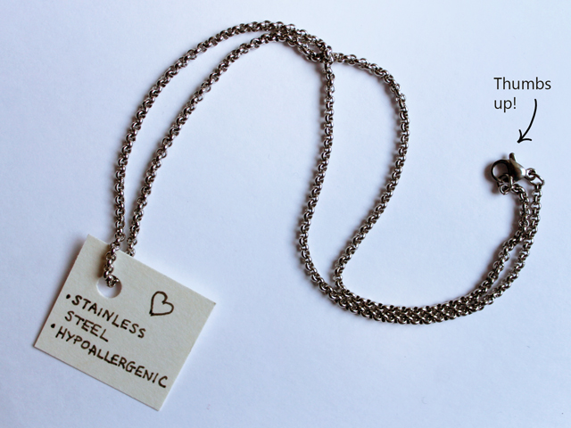 - For both you need beading tools and a chain. I selected an 18″ stainless steel one, as this metal is hypoallergenic and comfortable on the skin.