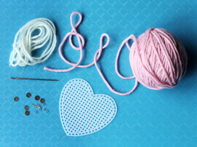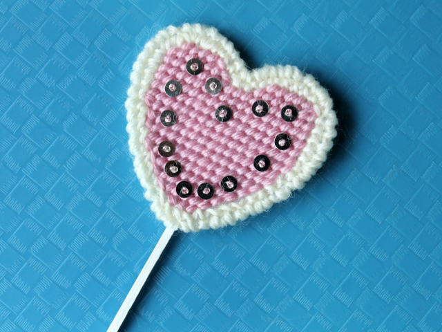 A “Needlepoint Plastic Canvas Heart” previously demonstrated in this post. I used yarn from my stash and a plastic canvas heart leftover from when I made them before, which originally came from Michael’s.