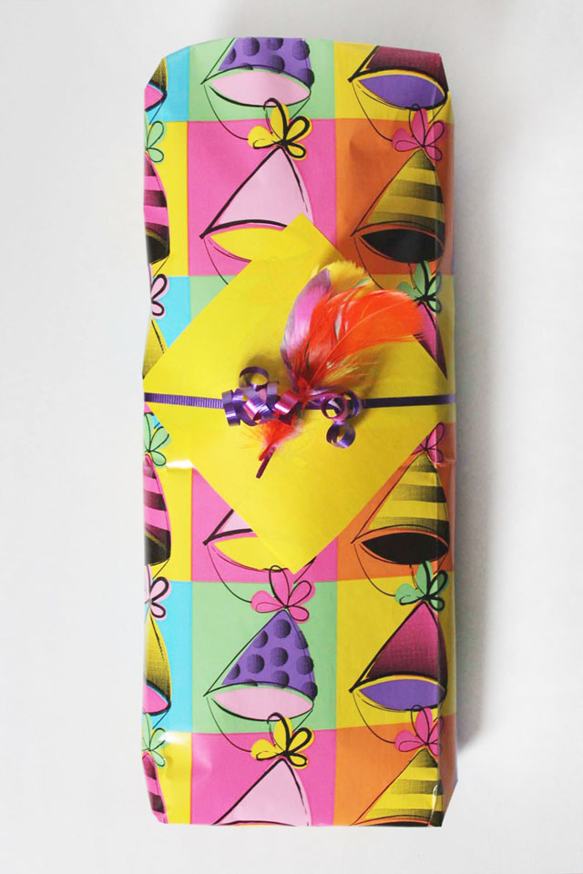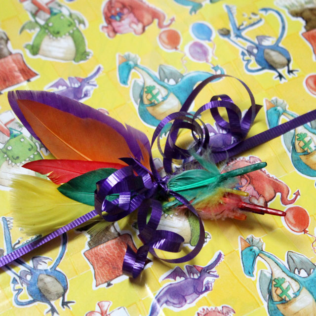 These feather gift decorations are quick to make with coloured feathers (that you can find where you buy craft supplies) and some curling ribbon or string. They are a fun way to dress up a present and depending on what colours you choose, will suit any occasion.