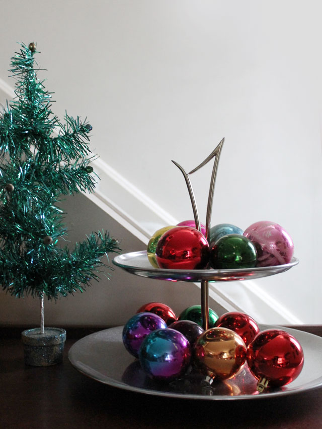 Supplies as above, except switch some thin wire for the embroidery floss, and add some other smaller beads to the mix. I had some from a vintage necklace that broke. Also, you’ll need at least one seed bead per ornament.