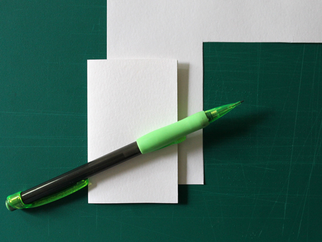 ↑ Cut along the lower edge and score (to fold) along the long edge. ↑