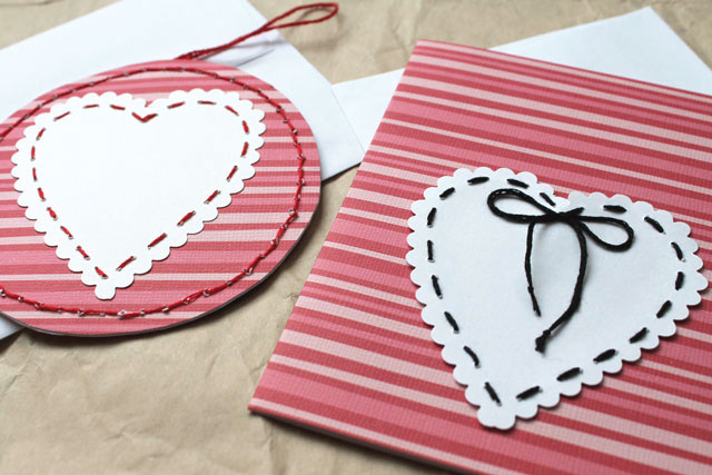 We have two ladies in our lives celebrating birthdays around Valentine’s Day, so I decided to make them each a Birthday and Valentine Card combination, by stitching them up some hearts.