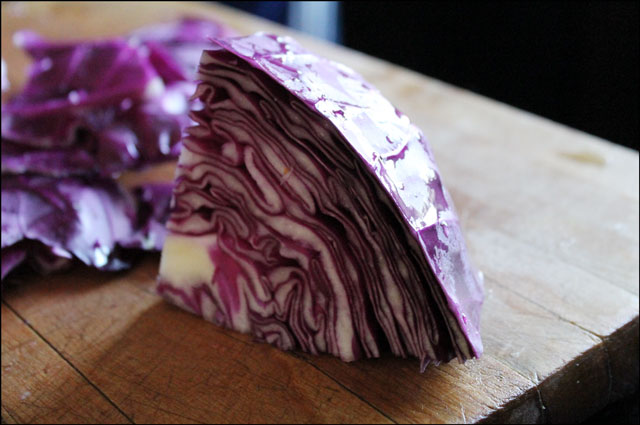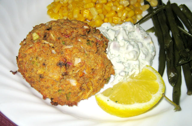 ↑ Nick made his Salmon Cakes and Purple Cabbage Coleslaw for dinner, which he served with a tossed salad, brown rice and corn. ↑