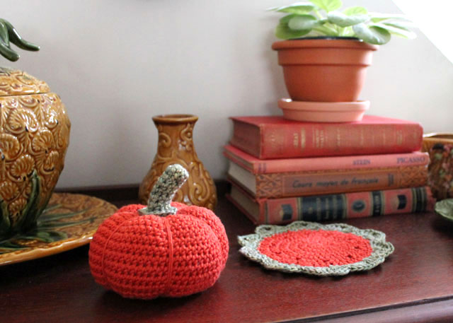 ↑ There’s the crocheted pumpkin you’ve seen before. I made it in 2014 using this pattern. ↑
