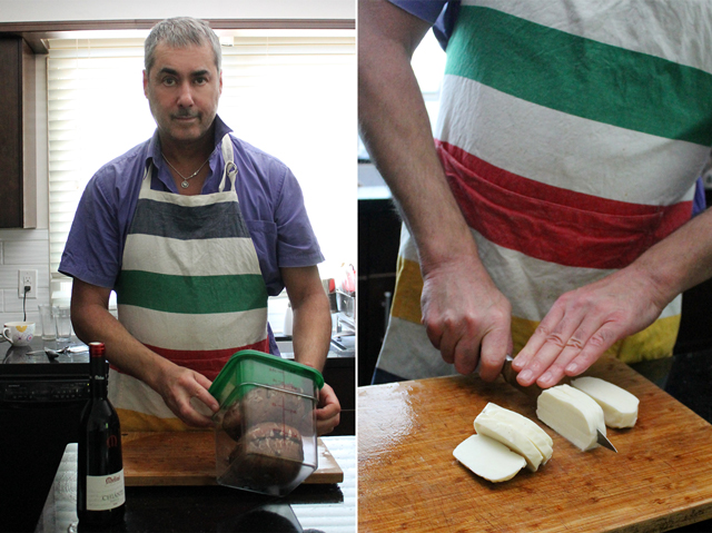prepping-vegetarian-bbq-halloumi-cheese-hudson-bay-apron-canada-day