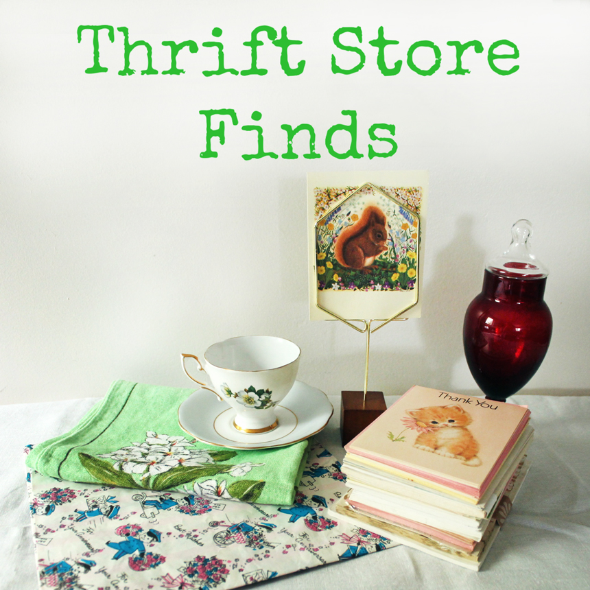 And that wraps up my recent thrift store purchases. I got all this stuff for under $35, which is less than I would have paid for the tablecloth alone, at a ‘regular’ store. I know that thrift store shopping isn’t for everyone, as there are a lot of junky and ugly things to sift through, since after-all, the stock is comprised of someone else’s cast offs. But personally, I get a kick out of finding the needle in the haystack.