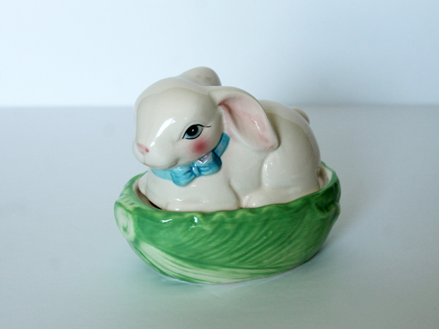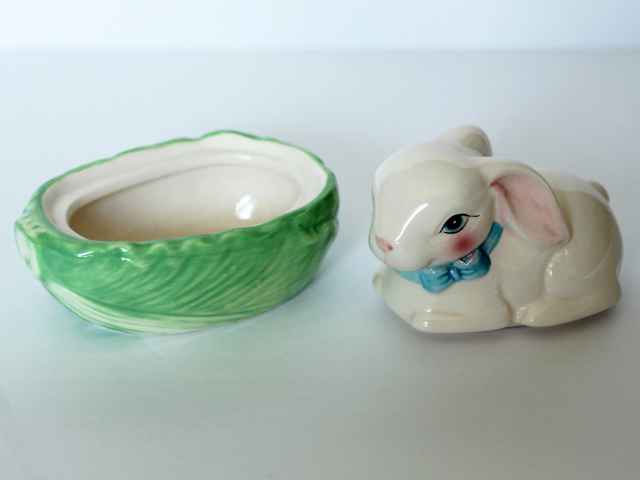 ↑ I’ve had this two-piece bunny trinket dish for a couple of years now, but it never made it into a post, so here it is today. I have no way of knowing whether it’s new or old but it looks like a vintage design to me so I’ll go with that! ↑