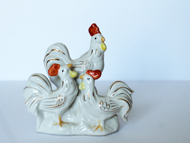 ↑ I’m not sure about the origin of this “Three Chickens” figurine, decorated with gold gilding. It looks quite old, though, maybe from the 40s or 50s. ↑