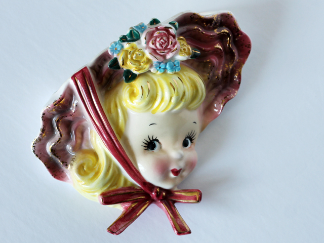 ↑ I’ll start with a rare “Lady Head Wall Pocket”, likely from the 50s. I was amazed to find her in absolutely perfect condition.