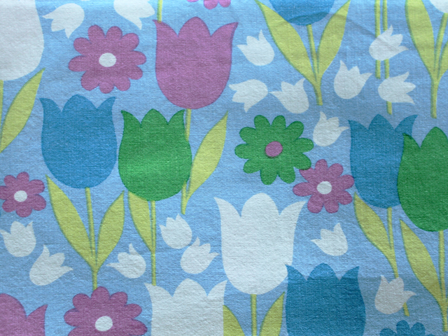 ↑ This cotton tablecloth with a tulip print is thick and lovely. It’s round, so perfect for our dining table, and trimmed with a charming scalloped edging. ↑