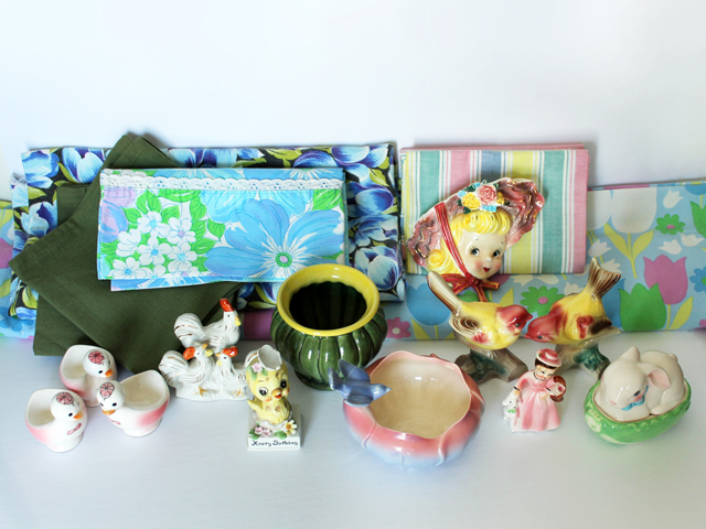 Today, we have a grouping of ceramics and linens, that I’ll be using to cheer the place up for spring and Easter.